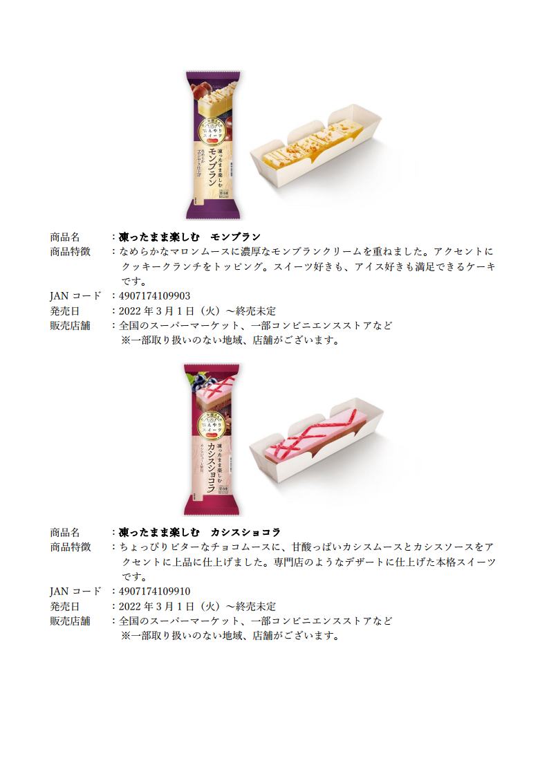 凍ったまま楽しむ「ケーキ屋さんのひんやりスイーツ」 3月1日発売!