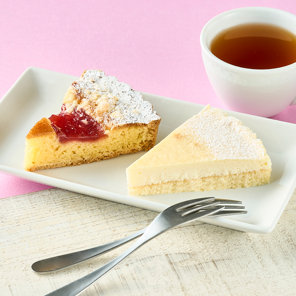 ※左:苺のクランブルタルト・右:ベイクドチーズケーキ