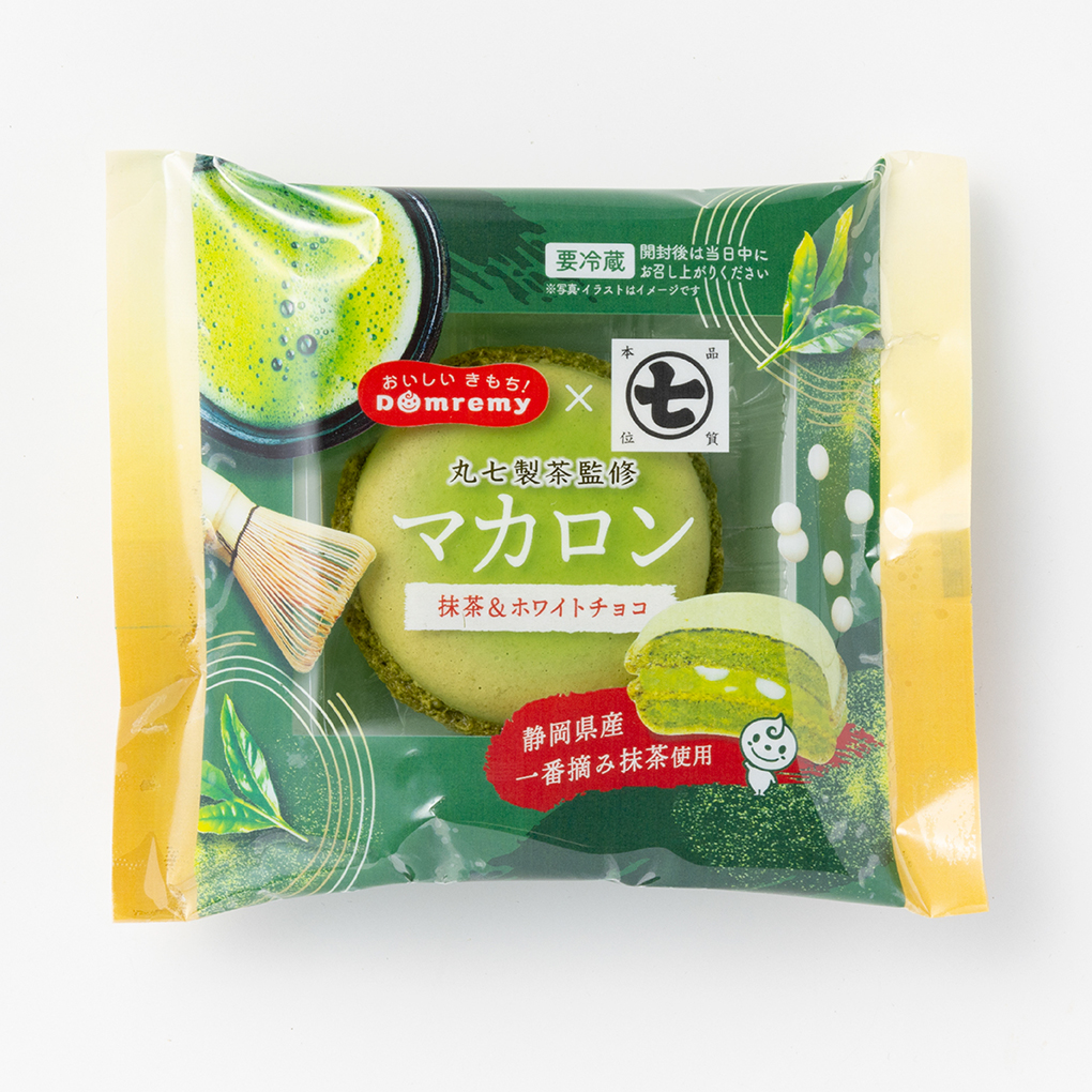 TV放映で話題となり、売り切れ続出の丸七製茶監修抹茶マカロンが再登場!!静岡県産一番摘み抹茶を使用したマカロン生地で抹茶クリームをサンドした本格志向のデザートです。抹茶クリームに忍ばせたホワイトチョコがアクセントになっています。