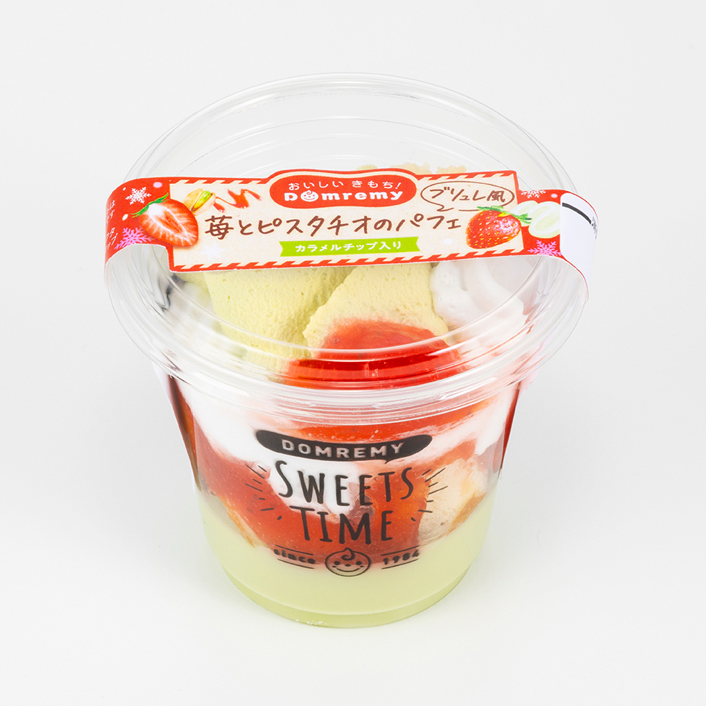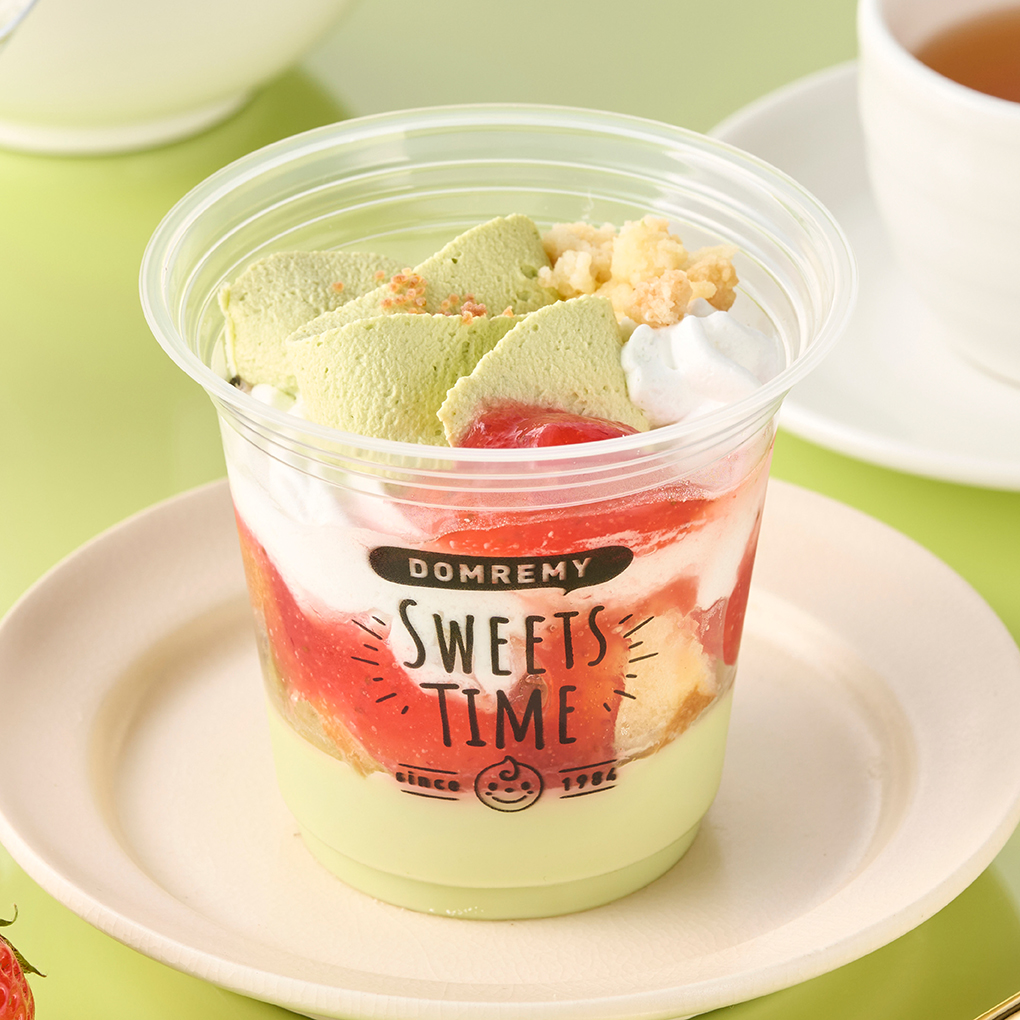 苺×ピスタチオの期間限定パフェが登場!ピスタチオペースト入りプリンの上にスポンジを敷きつめ、苺の果肉が入った真っ赤なソースと、ホイップクリーム、ピスタチオカスタードホイップクリーム、クランブル、苺のキャンディチップで飾り付けました。ピスタチオの香りと苺の酸味が楽しめる贅沢なパフェです。