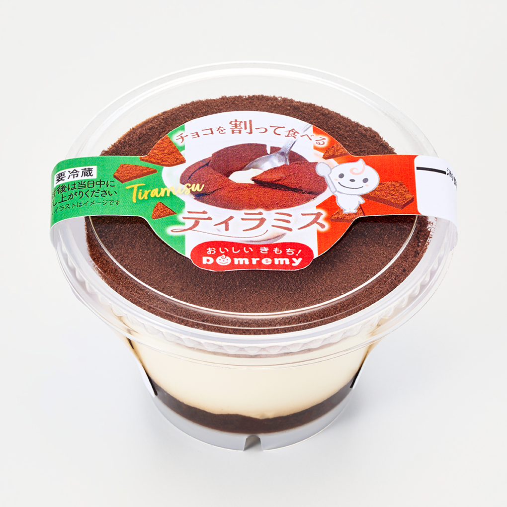 SNSで話題沸騰の「新食感ティラミス」が登場!ほろ苦いコーヒーシロップをしみ込ませたココアスポンジの上に濃厚なティラミスムース、しっとりとしたココアスポンジを重ね、パリッと割れるチョコソースをトッピングしました。上からパリッと割って食べる新感覚の食感と見ためが楽しい、味は本格派のデザートです。