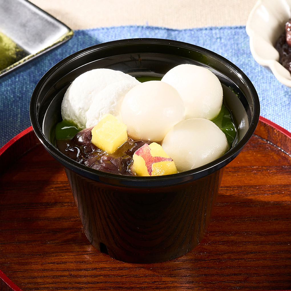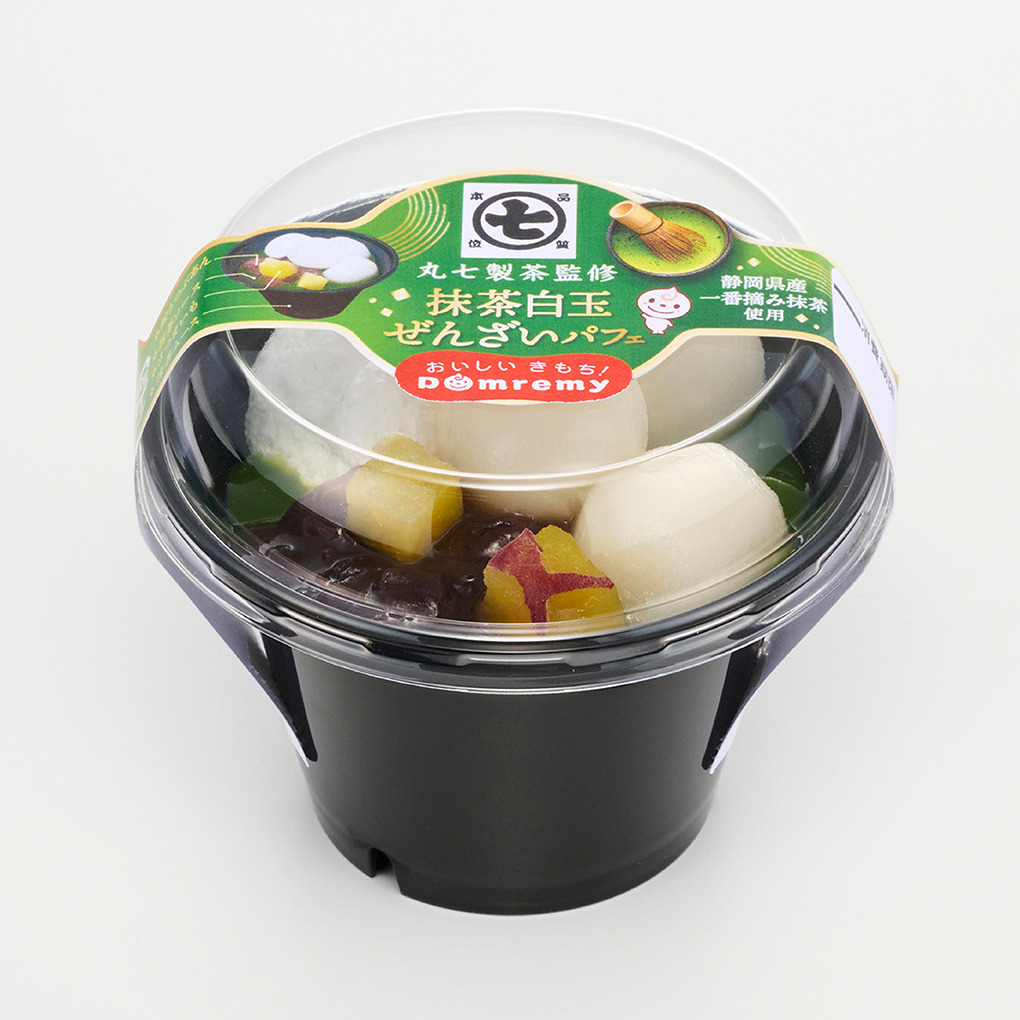 丸七製茶監修の抹茶白玉ぜんざいパフェが新登場!静岡県産一番摘み抹茶を使用したムースにホイップクリーム、抹茶ソース、白玉3個、さつまいもダイス、粒あんをトッピングし、ぜんざい風のパフェに仕立てました。年始にぴったりのデザートカップです。