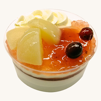 レアチーズムースに白桃をごろっとのせたデザートです。