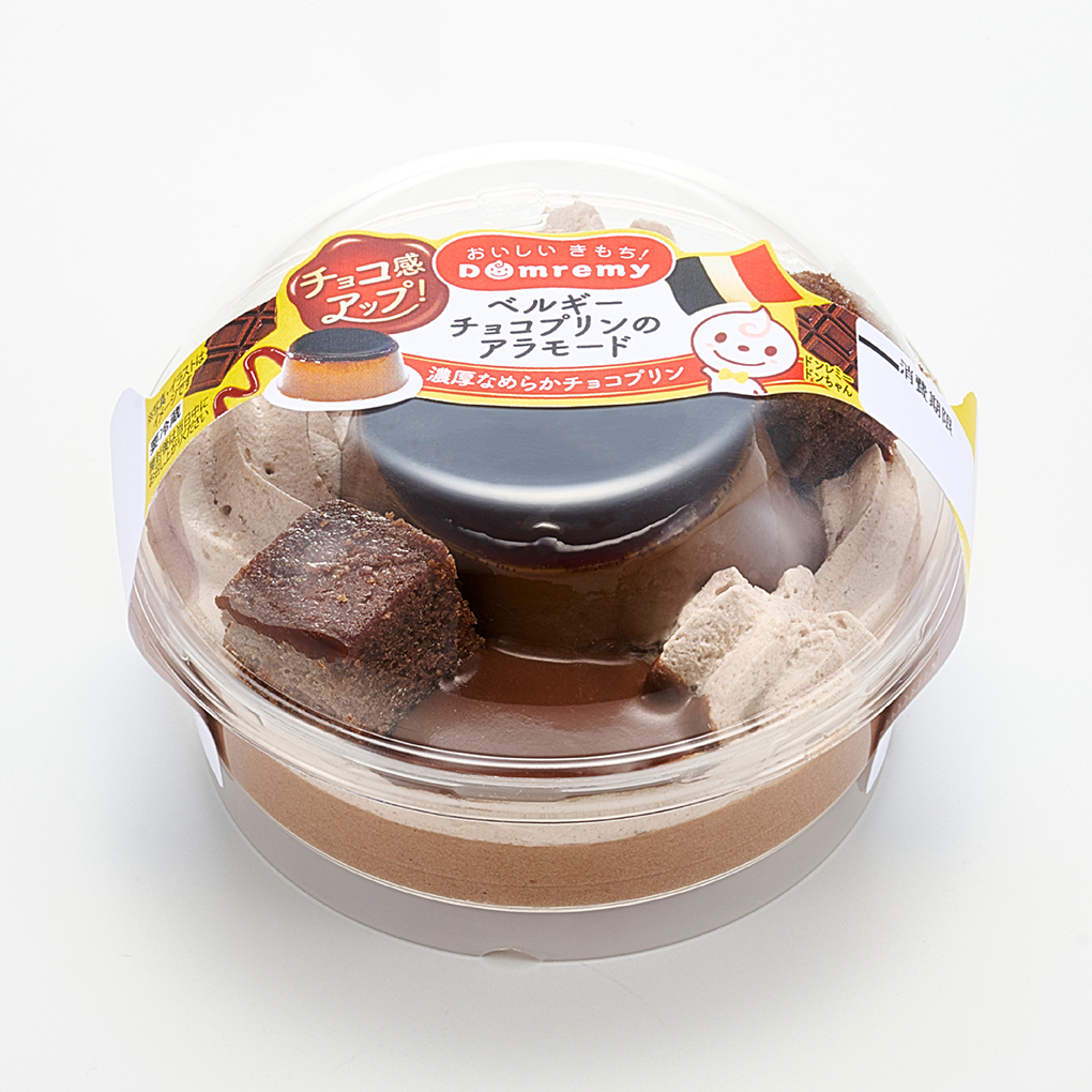 人気の定番商品が、さらにチョコ感アップ!真ん中のベルギーチョコプリンはベルギーチョコの含有量を増やして、さらにリッチな味わいに。ホイップクリームとムース部分もチョコ風味がアップし、より満足度を高めた仕様にしました。見ためはそのままに、味の部分がさらにおいしくリニューアルしています。